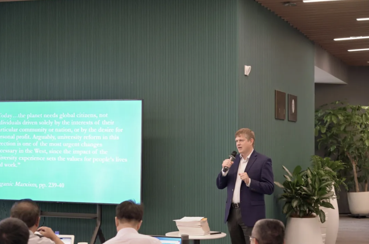 美国戈申大学贾斯汀·海因策克尔博士分享主题“世界公民与生态文明:怀特海和儒家关于高等教育关系教学法和评估的观点”