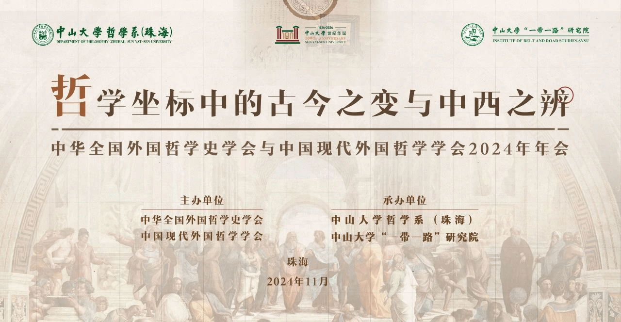 2024年11月23日至24日,由中华全国外国哲学史学会、中国现代外国哲学学会主办,中山大学哲学系(珠海)与中山大学“一带一路”研究院承办的2024年年会在中山大学珠海校区成功举办。本届年会以“哲学坐标中的古今之变与中西之辨”为主题,吸引了海内外两百余位专家学者参会,围绕东西方哲学对话、全球文明互鉴等前沿议题展开深入研讨。北师香港浸会大学高等研究院怀特海研究中心派出郭海鹏、杨富斌两位教授参会,分别发表专题演讲,为中西哲学交流注入新思考。