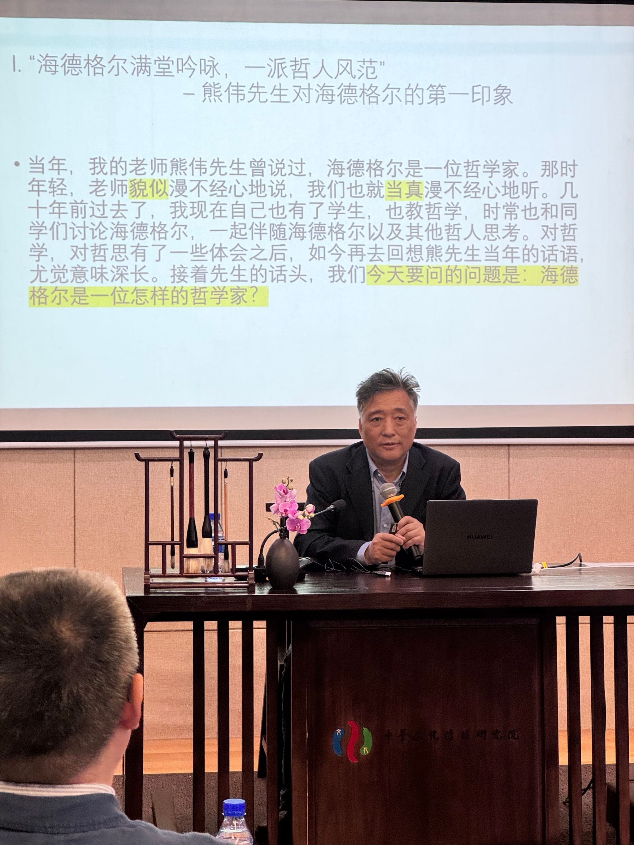 在讲座的核心部分,王庆节教授聚焦海德格尔哲学的根本追问——“存在”问题。他介绍,《存在与时间》以“存在”(Sein)为研究对象,重点探寻“亲在”(Dasein,又译“此在”)的本质意义。在教授看来,“存在”的根本性在于它不预设答案,甚至缺乏现成的发问语词与语法,这使得海德格尔刻意避开传统哲学术语,以防陷入固有思维窠臼。他形象地将这种追问比作探寻“林中路”:“就像在茫茫林海中寻路,虽常陷迷津、不见目标,却关乎人类生存的根本——所有存在事物的性质与本性皆源于此。”教授特别指出,正如“南极以南”无从发问,“存在”的定位也无法简单界定,因此《存在与时间》将其确立为“基础存在论”问题。