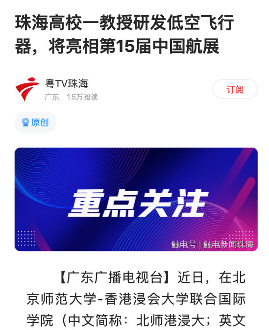 2024/10/08[触电新闻] -- 珠海高校一教授研发低空飞行器,将亮相第15届中国航展