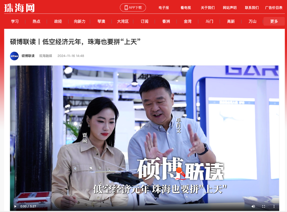 北京师范大学-香港浸会大学联合国际学院高等研究院讲席教授、航空专家 单肖文:毫无疑问,这是低空经济开始起飞的一个征兆,我来航展已经很多次了,这是第一次专门为了这种“低慢小”的飞行器设置了专门展区,能有这么一个机会,把所有上下游的商业的不同的公司,把它放到一个时间空间的同一个点上,让大家能够找到适合自己产品的配套的供应商,这是一个非常重要的促进作用,对我们低空经济来说。尤其是珠海未来打造“天空之城”,有了展会,我们也可以在人才引进和产业引进方面能够发挥更好的作用。
