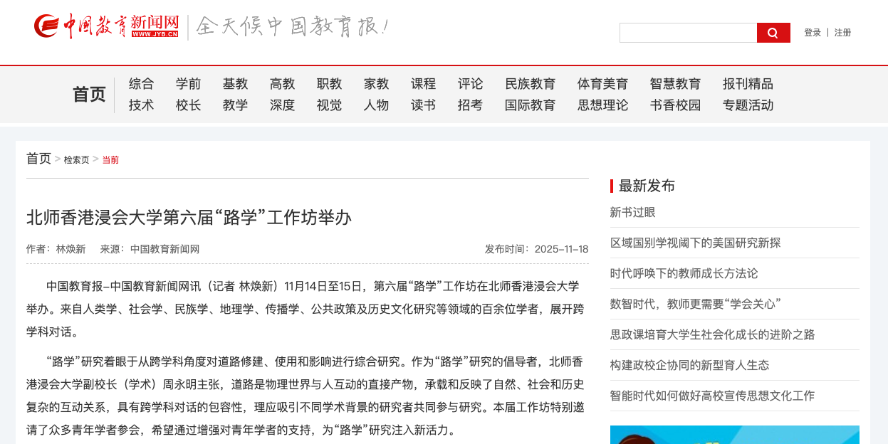 中国教育报-中国教育新闻网讯(记者 林焕新)11月14日至15日,第六届“路学”工作坊在北师香港浸会大学举办。来自人类学、社会学、民族学、地理学、传播学、公共政策及历史文化研究等领域的百余位学者,展开跨学科对话。