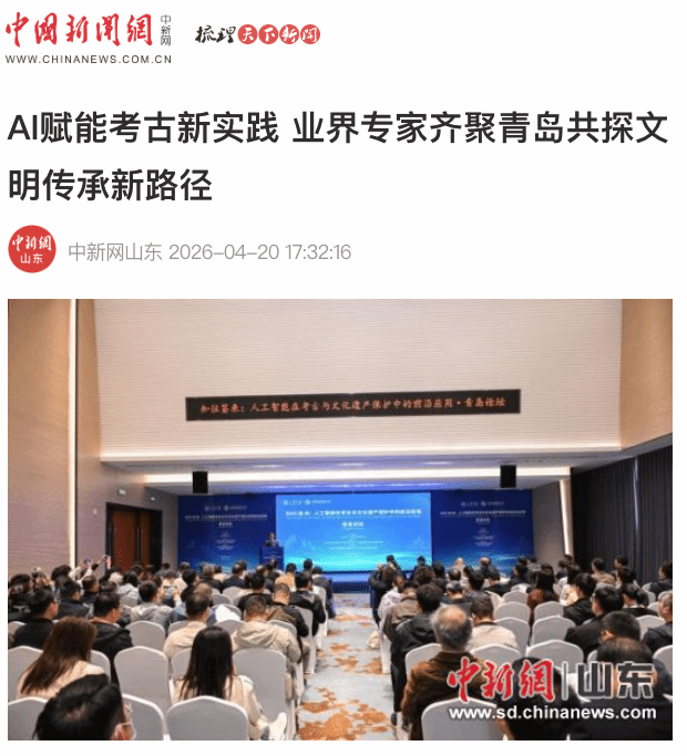 中新网山东新闻4月20日电 “知往鉴来:人工智能在考古与文化遗产保护中的前沿应用・青岛论坛”日前在山东大学青岛校区举行。来自国内外考古、计算机、数据科学等领域的260余位专家学者齐聚一堂,共话“AI+考古”融合发展,为文明探源与文化传承注入数智新动能。