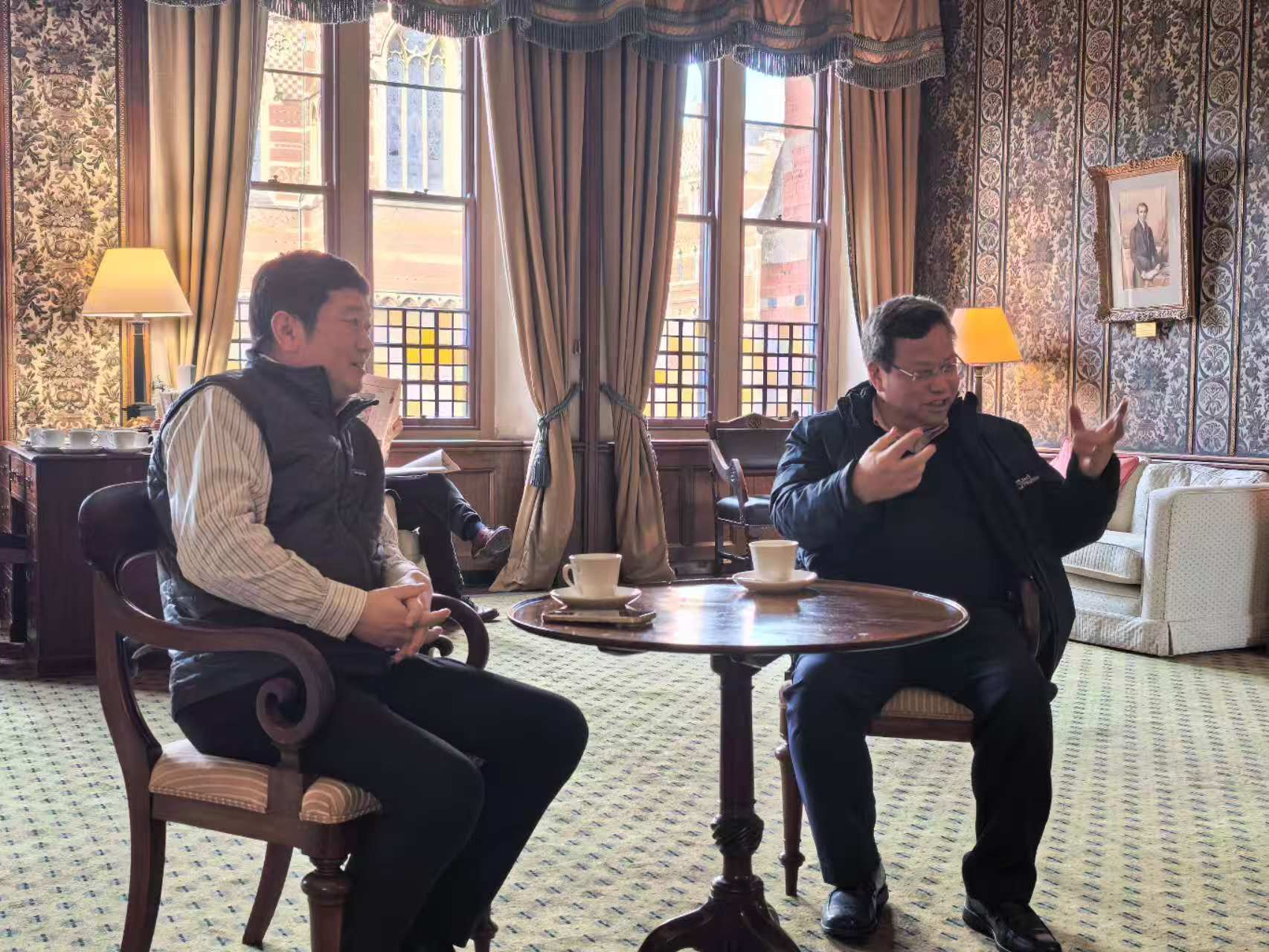 在牛津大学期间,陈致校长一行分别与牛津大学数学研究所终身教授、Exeter学院院士钱忠民教授,以及欧洲科学院院士、牛津大学首席教授陈贵强教授进行交流,双方就学术研究、人才培养等议题深入交换意见。