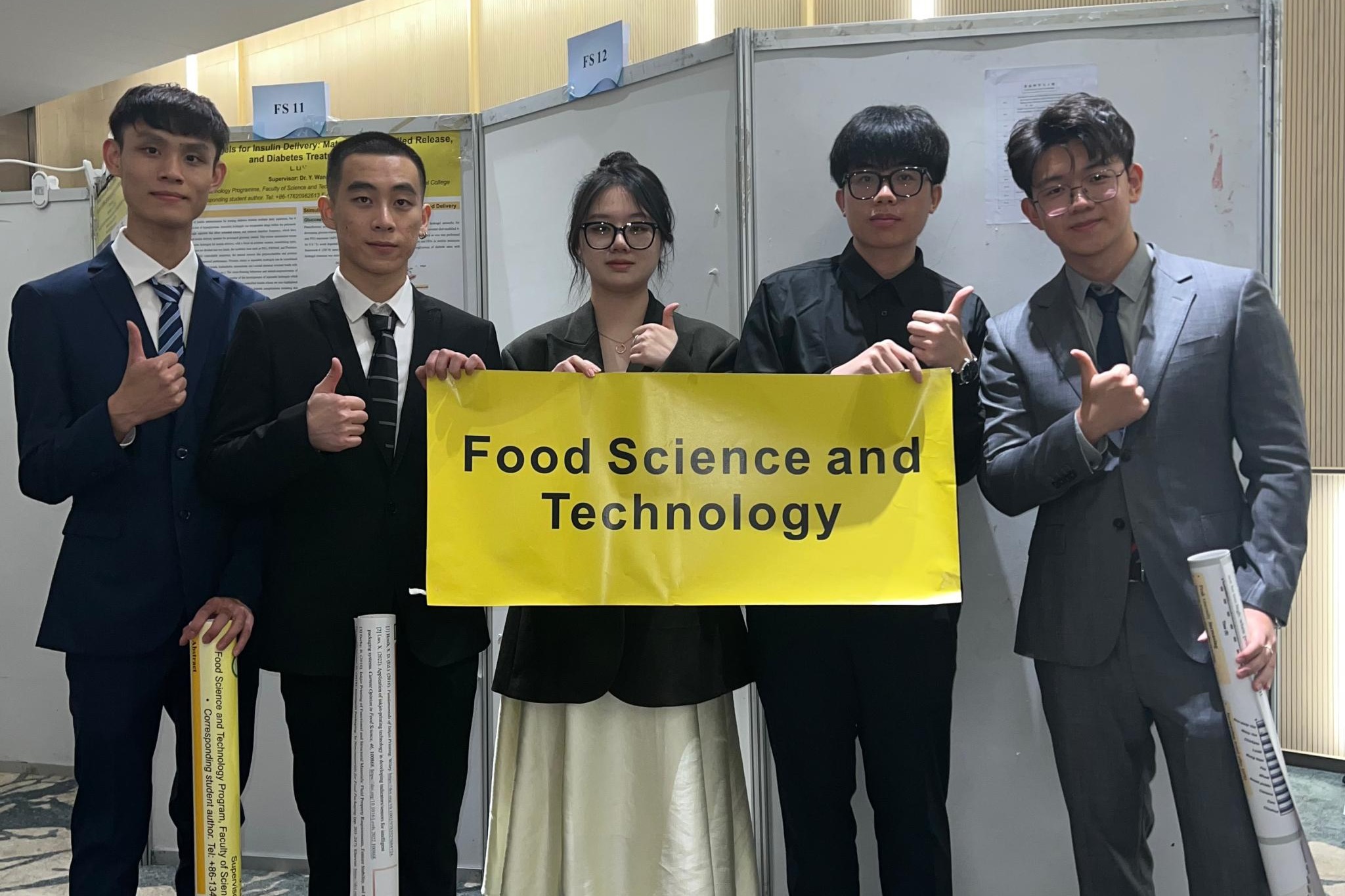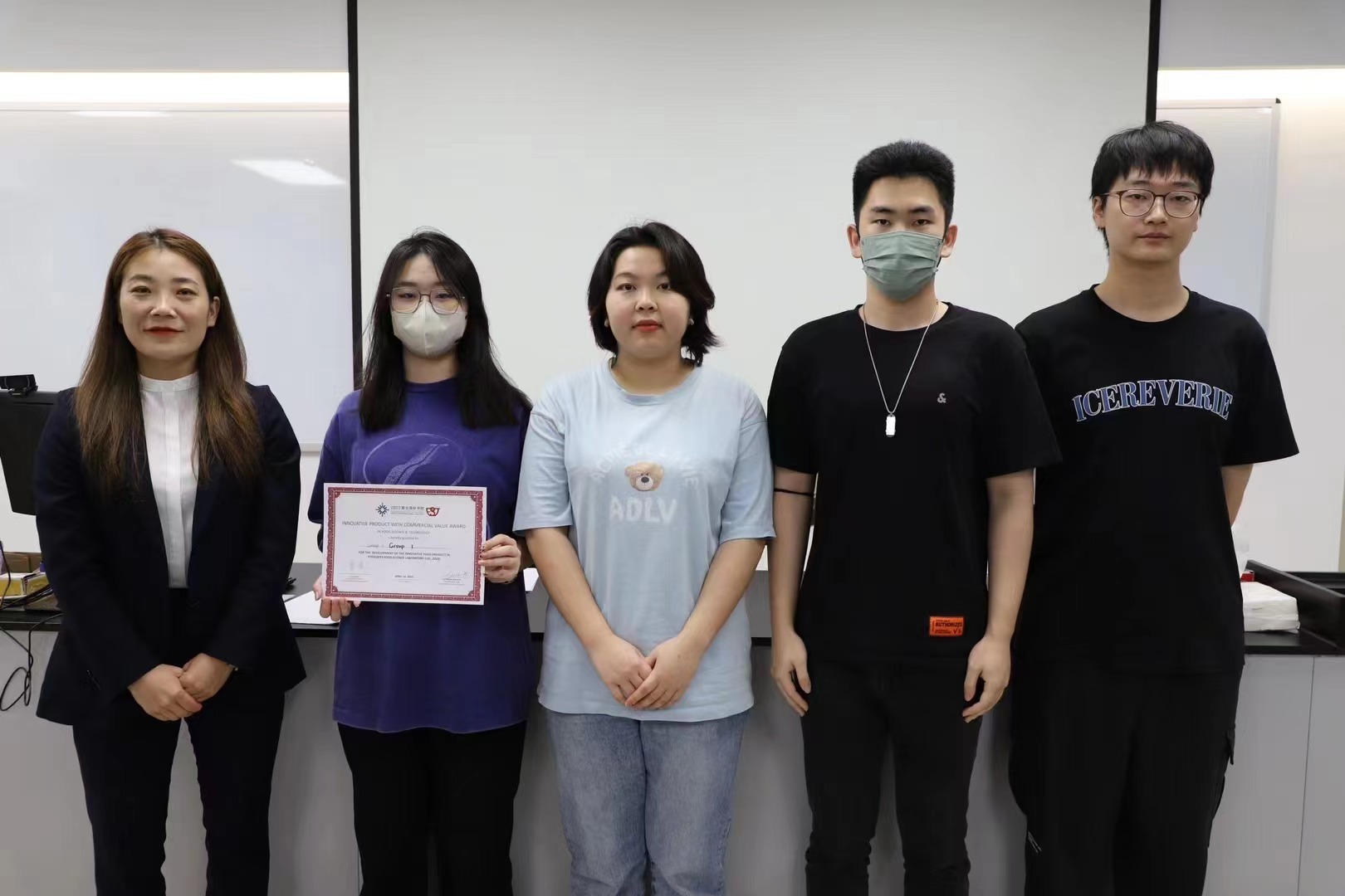 Xing Mingyu (second from left) and team win the Most Valuable Business Award at UIC's Innovative Food Carnival